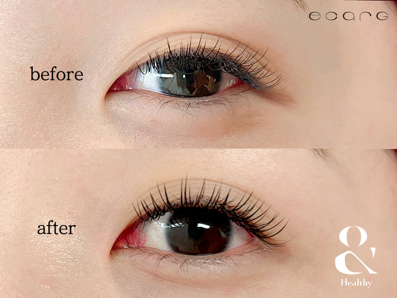 &Healthyは、まつげエクステとまつげパーマの技術を組み合わせた施術。エクステを装着した後に自まつげごとカールを上げることで、下がりがちなエクステをしっかりリフトアップし、自然でぱっちりとした目元に仕上げます。